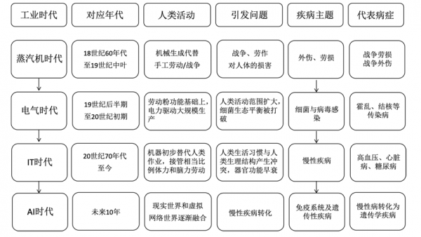 图(1)工业革命迭代与疾病谱系位移的对应关系。